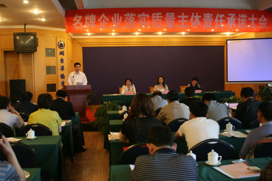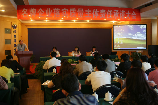 5月30日,名牌企业落实质量主体责任承诺大会在烟台召开。省质监局质量处副处长高青、烟台质监局副局长刘世果等有关领导出席会议并讲话。会议由省k1体育会长孟晓红主持,烟台、威海市名牌企业法人,有关市质监局质量管理人员等200余人参加了会议。